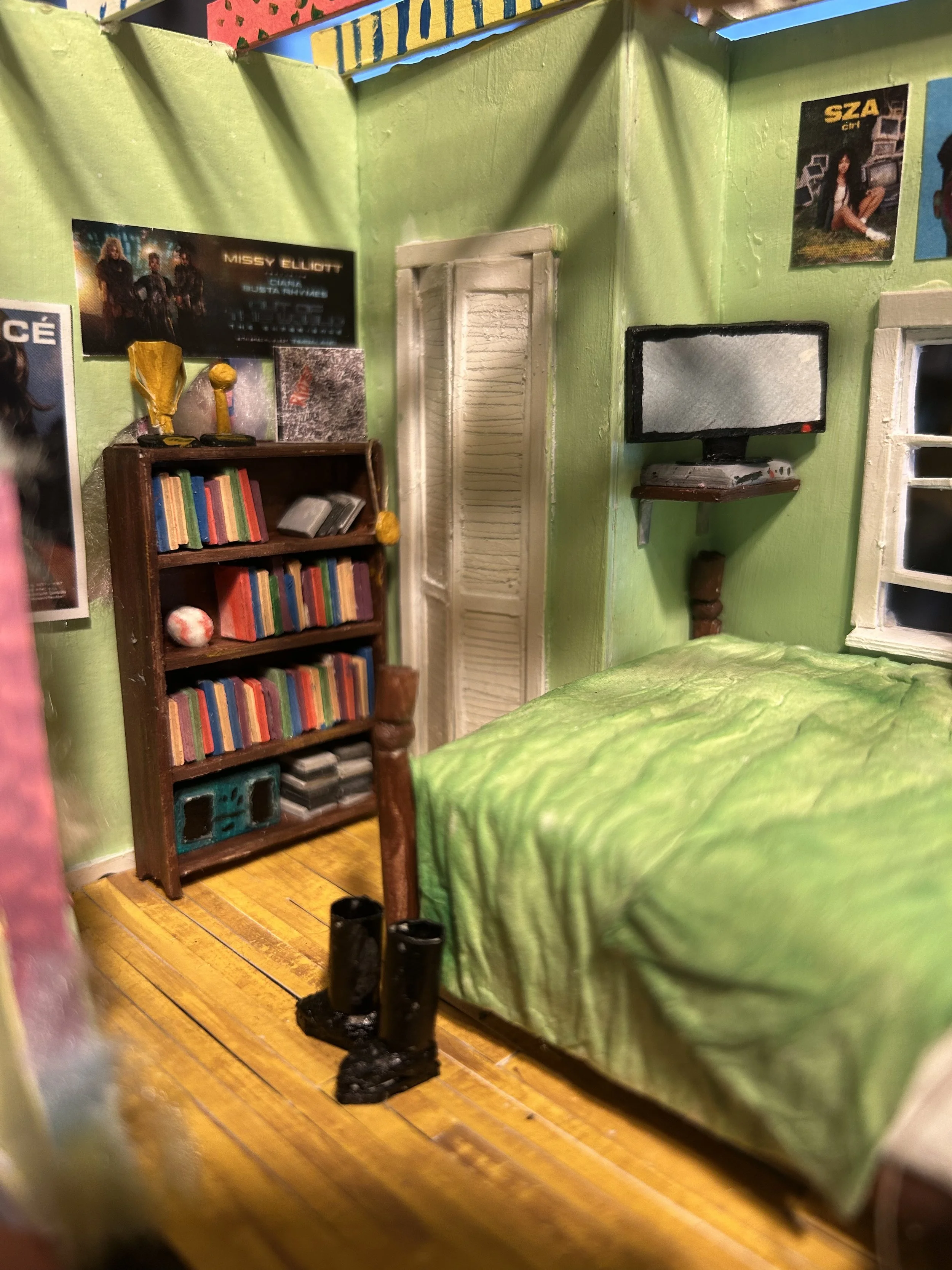 If I were to make improvements first thing I would do is add more clutter, piles of clothes and things hanging from the ceiling, more stuffed animals in particular an albino alligator, I also had an open diary that I forgot to glue down and ended up losing it.